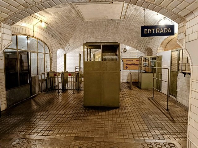 Lo curioso es que no huele a museo, sino a metro de verdad. Y cuando un tren actual atraviesa el túnel sin detenerse, el destello de las luces convierte los carteles antiguos en un fogonazo de vida. Por un instante, parece que escuchas gente con prisa, voces que se cruzan y hasta el eco de un vendedor de periódicos.