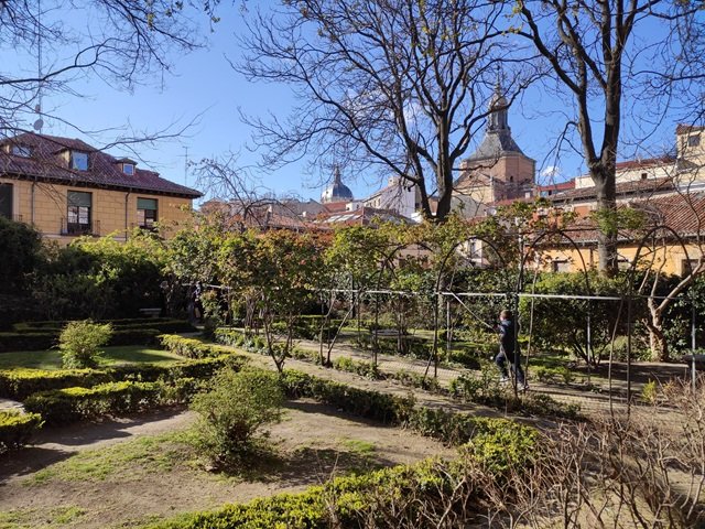 Hay rincones de Madrid que parecen jugar al escondite. El jardín del Príncipe de Anglona es uno de ellos. Basta con caminar un poco entre las callejuelas de La Latina para dar con una verja discreta que casi nadie mira. Tras cruzarla, la ciudad se apaga de golpe y solo quedan los setos recortados, los parterres simétricos y un aire señorial que invita a bajar el ritmo frenético que tiene esta ciudad.